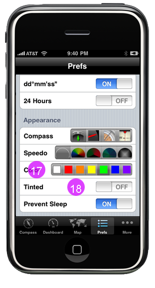 18. Tinted Switch - will colorize the gradients in the data fields of Compass and Dashboard Tab |